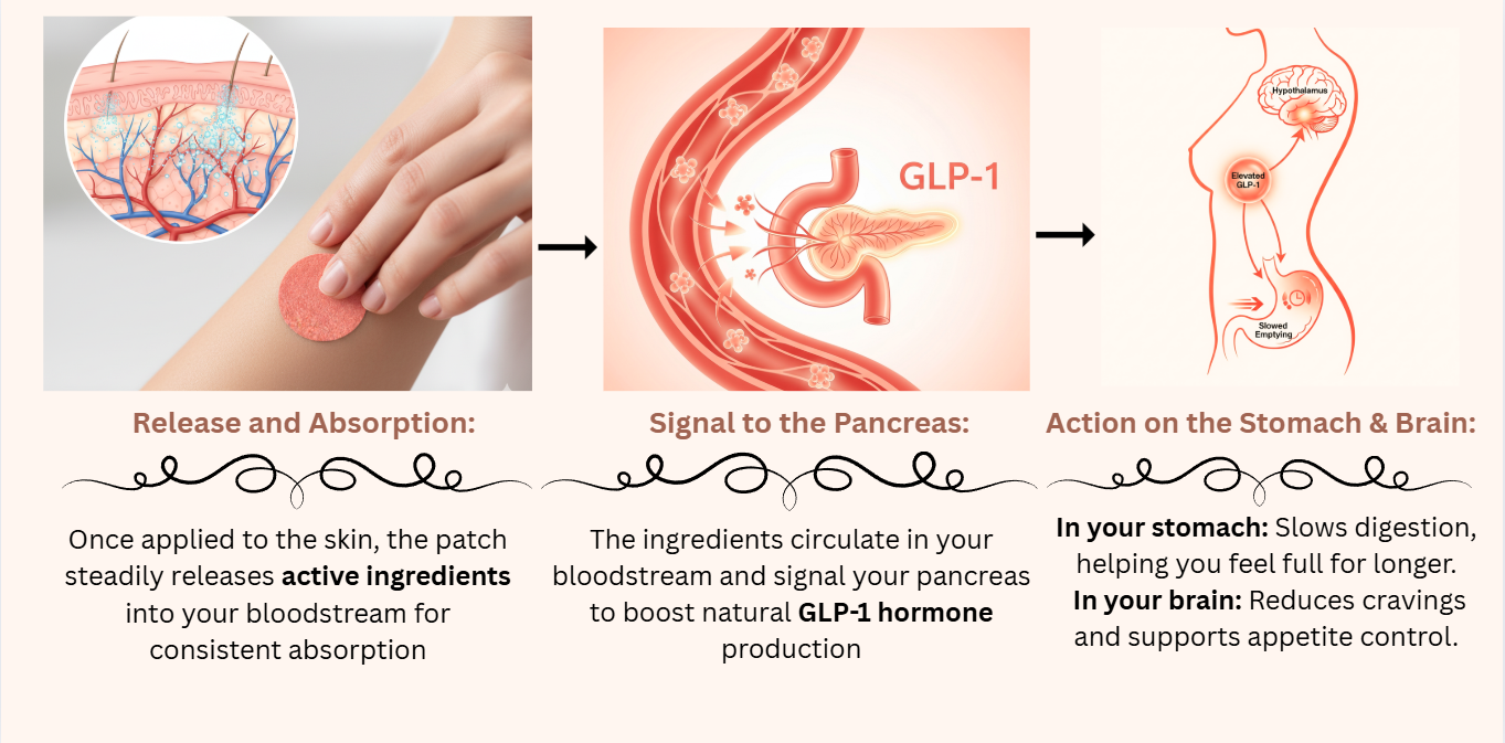 GLP-1 patches are designed to aid weight management by helping to suppress appetite and curb cravings. The patches contain ingredients like berberine and green tea extract, which are marketed to support a healthy metabolism and boost energy, working together to support your weight loss efforts.